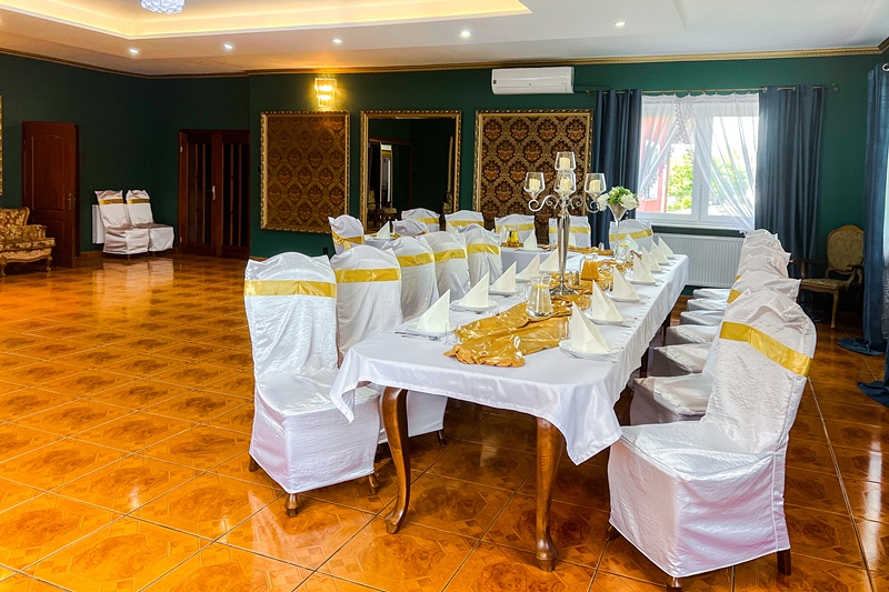 Zapraszamy do klimatyzowanej Sali Weselnej gdzie Niezwykły klimat, fachowa obsługa kucharska i kelnerska zapewnią wspaniałe wspomnienia z uroczystości weselnej.Państwo Młodzi mogą zaprosić do wspólnej zabawy około 200 osób. Dodatkowo gratis proponujemy drugą sale na odpoczynek oraz 5 pokoi noclegowych.